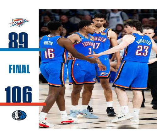雷速体育10月7报道 NBA季前赛,雷霆背靠背89-106不敌独行侠。