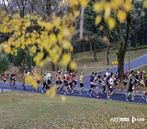 参赛者迎着晨光奔跑。南都N视频记者 黎湛均摄