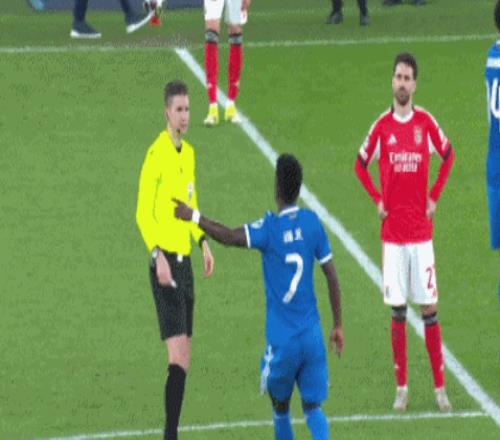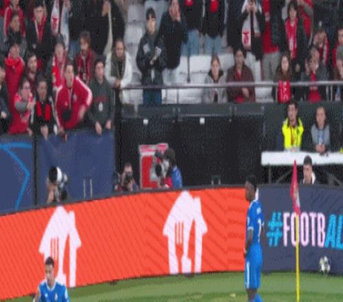 进入补时阶段,双方球员依旧拼抢激烈,场边球迷也不闲着,本菲卡球迷向维尼修斯投掷水瓶和电子烟等各类杂物!